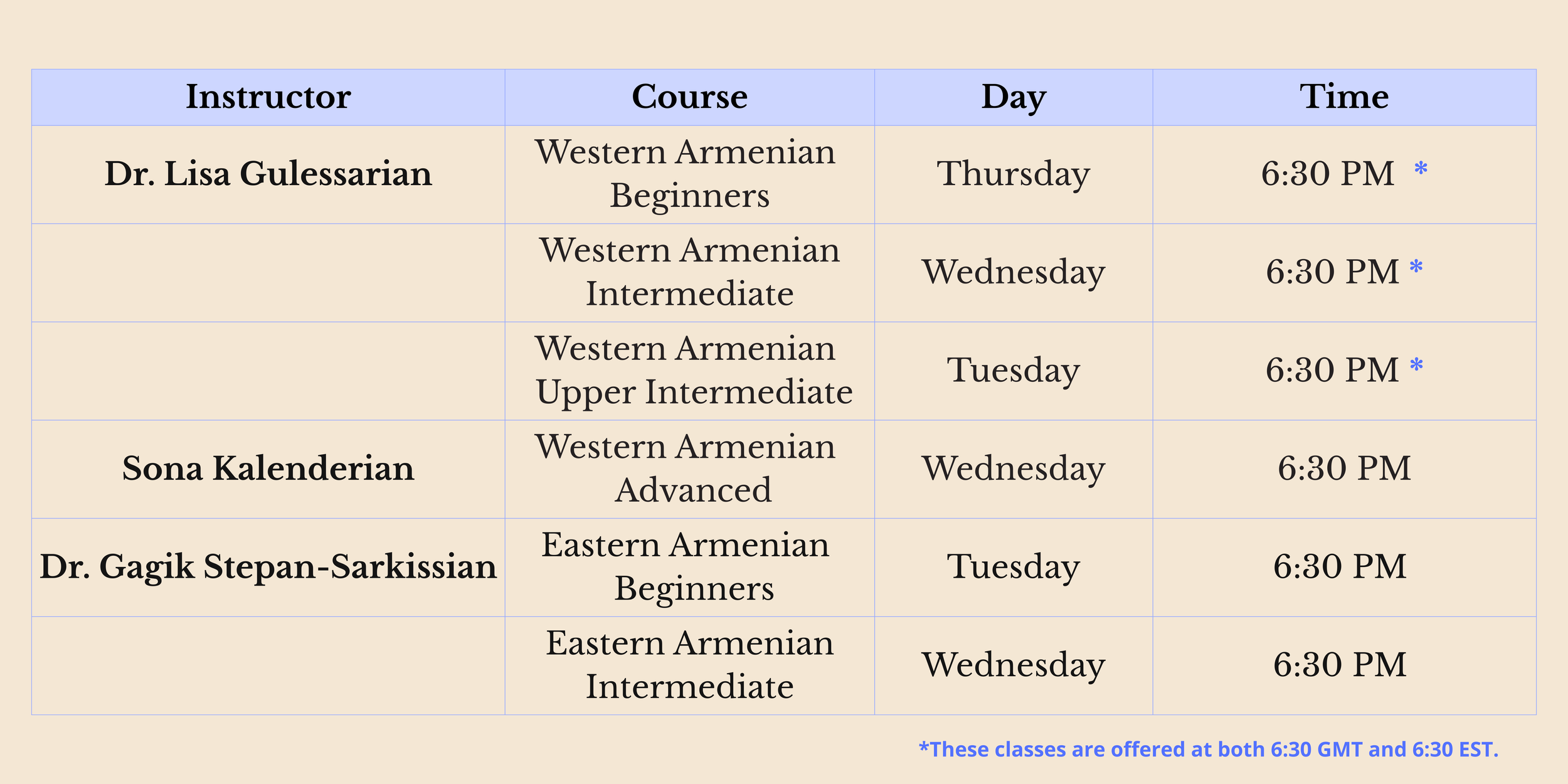 The classes with Dr. Lisa Gulessarian and Dr. Gagik Stepan-Sarkissian will begin on 29 September.